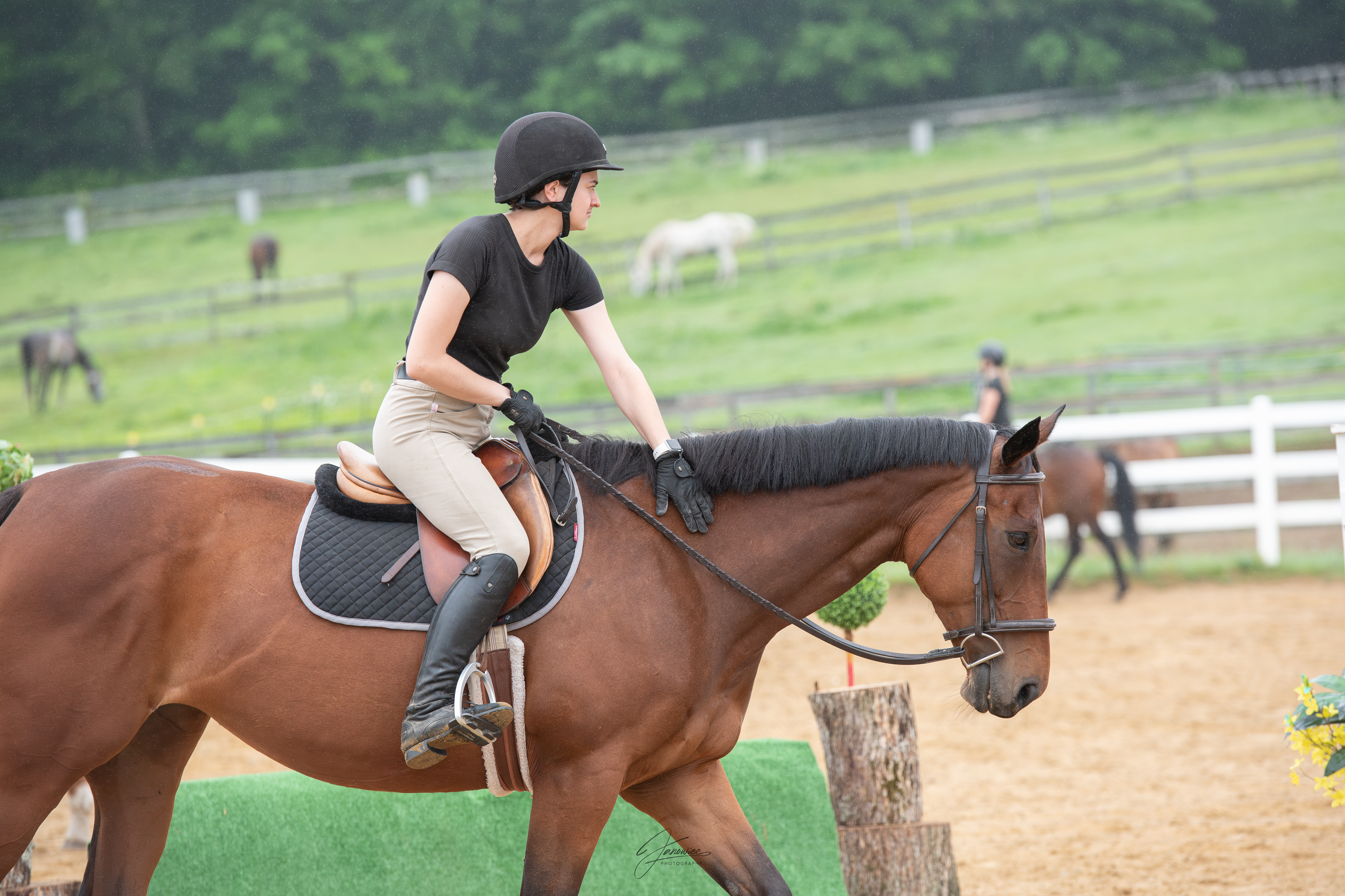 When a horse arrives at our farm, we prioritize their well-being and care. We believe in excellence throughout every step of the process, beginning with horse care and encompassing facilities, veterinary, shoeing, equipment, and instruction and training of both the horse and the human - from lead line to open and everything in between for hunters, jumpers, and equitation. We specialize in classical old-school training of thoroughbreds and riders here at Aranelle Farms. No shortcuts. No gimmicks.